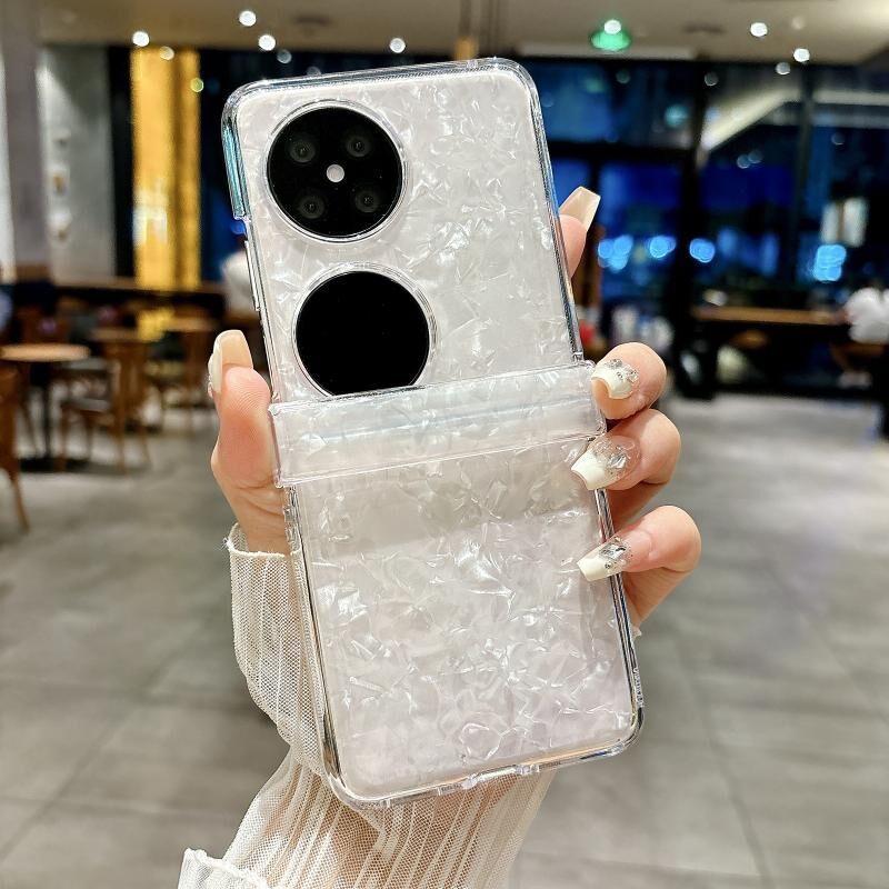 Για Huawei P50 Pocket τριών τεμαχίων Set Pearlescent Shell Υφή τηλέφωνο υπόθεση (λευκό)