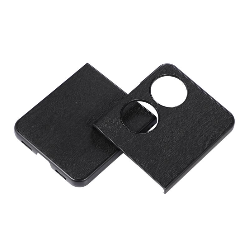 Για Huawei P50 Pocket ξύλινη υφή PU υπόθεση τηλεφώνου (Μαύρο)
