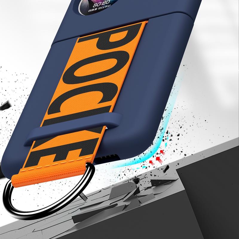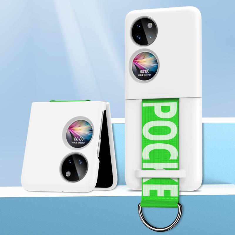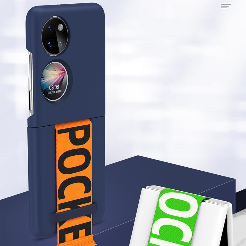 Θήκη κινητού Huawei P50 Pocket με λουρί καρπού, υφή δέρματος, ματ PC (Ναυτικό Μπλε)