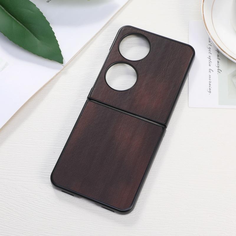 Θήκη τηλεφώνου Huawei P50 Pocket με υφή κίτρινης αγελάδας, από PU δέρμα (Καφέ)