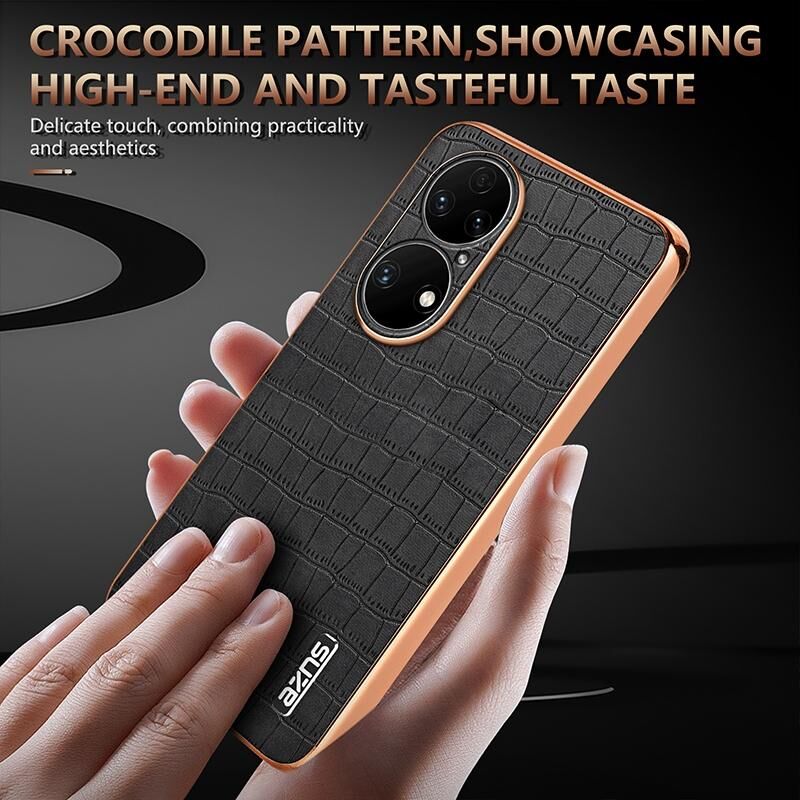 Θήκη κινητού τηλεφώνου πλήρους κάλυψης με ηλεκτρολυτικό πλαίσιο και υφή κροκόδειλου για Huawei P50 Pro AZNS (Μαύρο) (AZNS)