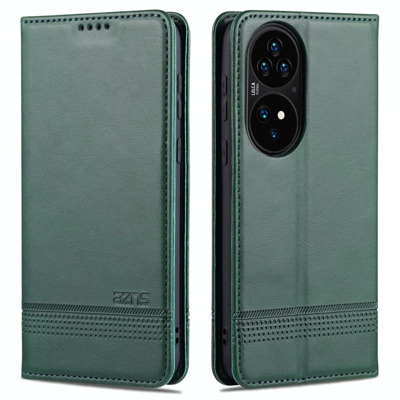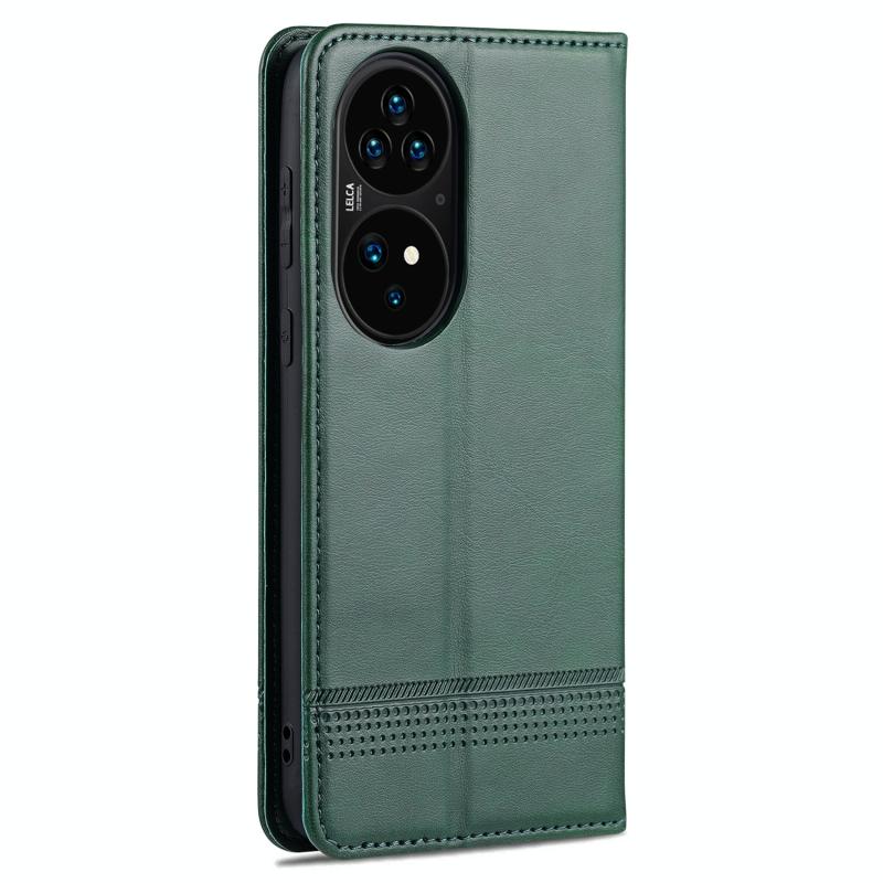 Θήκη Huawei P50 Pro AZNS Μαγνητική Δερμάτινη Οριζόντια με Υφή Μοσχαριού, με Θήκες Καρτών & Στήριξη & Πορτοφόλι (Κόκκινη) (Σκούρο πράσινο)