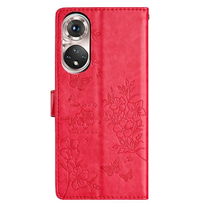 Θήκη τηλεφώνου από δέρμα με πεταλούδες και λουλούδια για Huawei P50 Pro (Μαύρο)