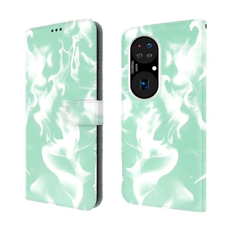 Για το Huawei P50 Pro Cloud Fog Pattern Οριζόντια Flip δερμάτινη θήκη με υποδοχή για κάρτες και πορτοφόλι (πράσινο χρώμα)