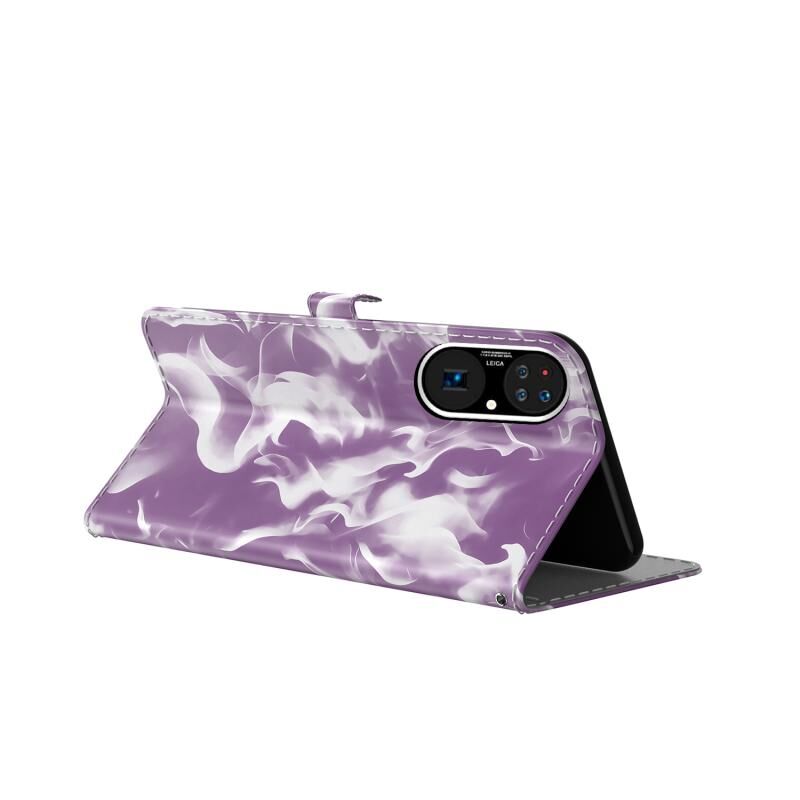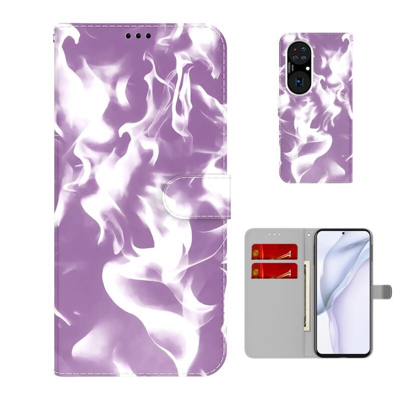 Για Huawei P50 Pro Cloud Fog Pattern Οριζόντια Flip δερμάτινη θήκη με υποδοχή για κάρτες και πορτοφόλι (μωβ)