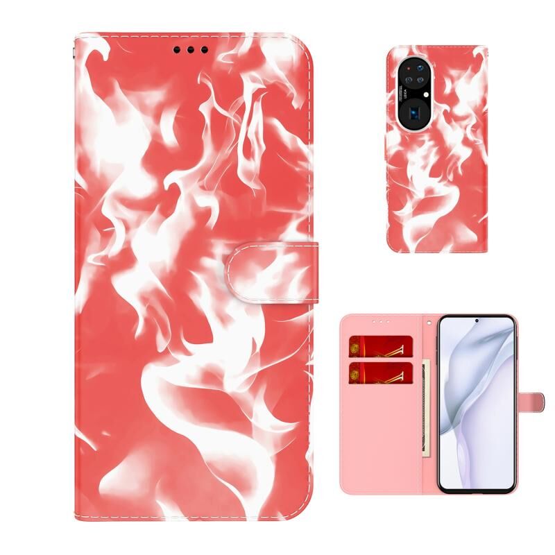 Για Huawei P50 Pro Cloud Fog Pattern Οριζόντια Flip δερμάτινη θήκη με υποδοχή για κάρτες και πορτοφόλι (κόκκινο)
