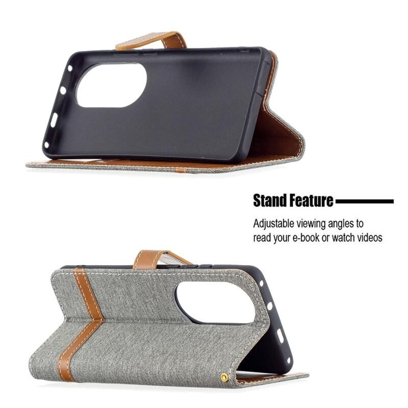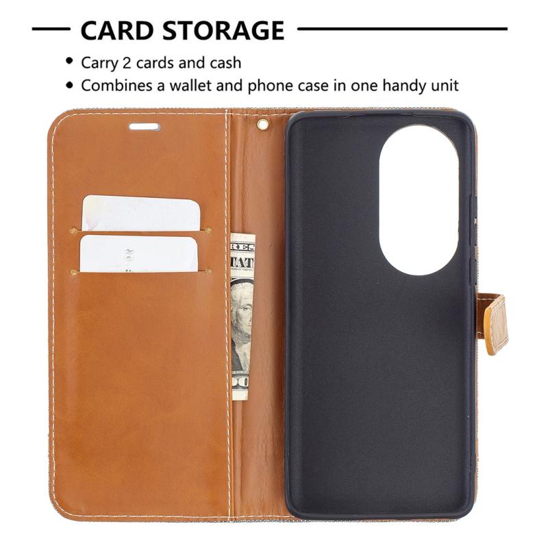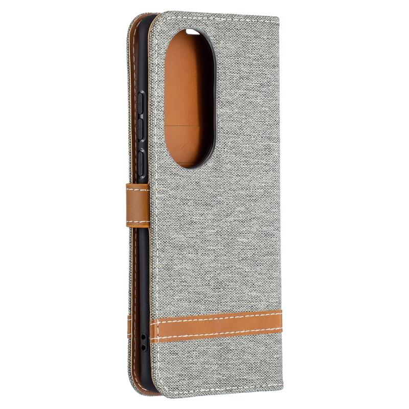 Θήκη δέρματος οριζόντιας αναδίπλωσης για Huawei P50 Pro με υφή τζιν, χρώμα που ταιριάζει, με βάση στήριξης & θήκες καρτών & πορτοφόλι & κορδόνι (Μαύρο)