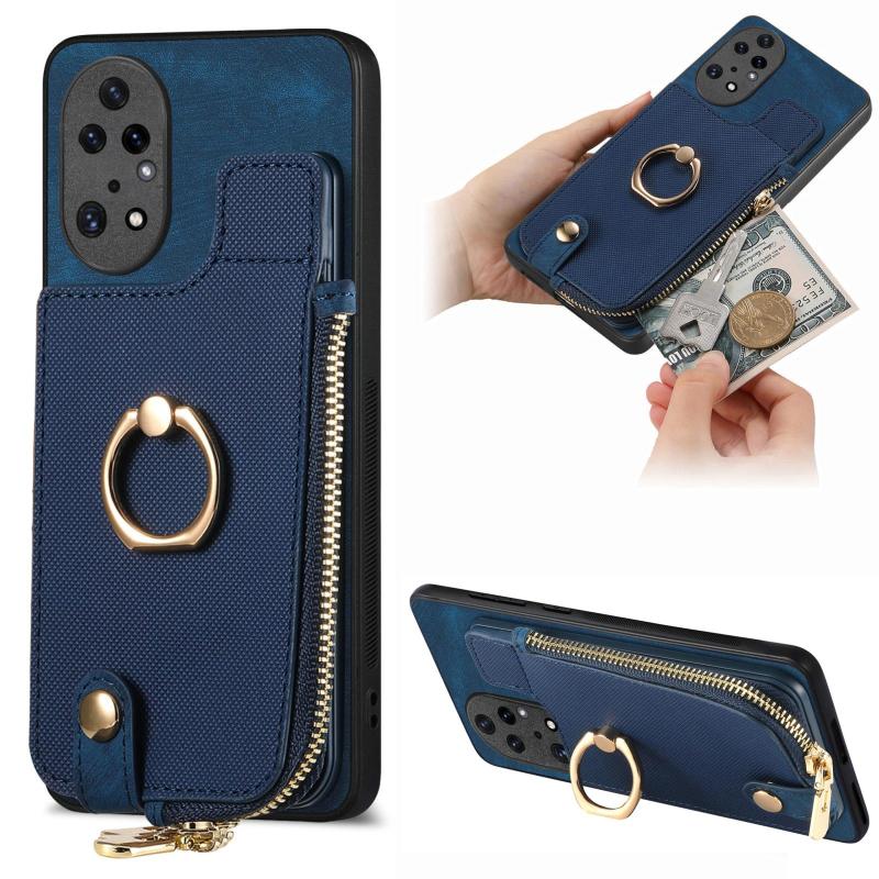 Θήκη Huawei P50 Pro Δερμάτινη με Δαχτυλίδι & Κάτοχο Κάρτας (Μπλε)