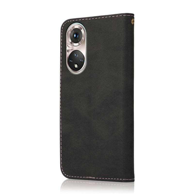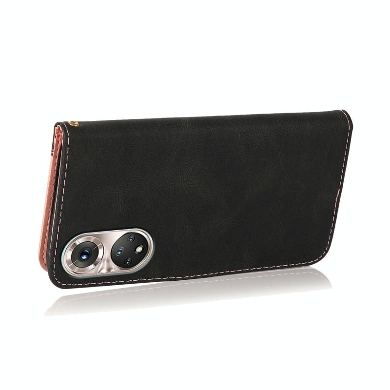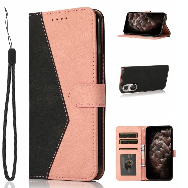 Θήκη τηλεφώνου Huawei P50 Pro από δέρμα με διχρωμία ραφής (Μαύρο Ροζ Χρυσό)