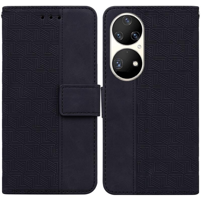 Για Huawei P50 Pro Γεωμετρική ανάγλυφη δερμάτινη θήκη τηλεφώνου (μαύρο)