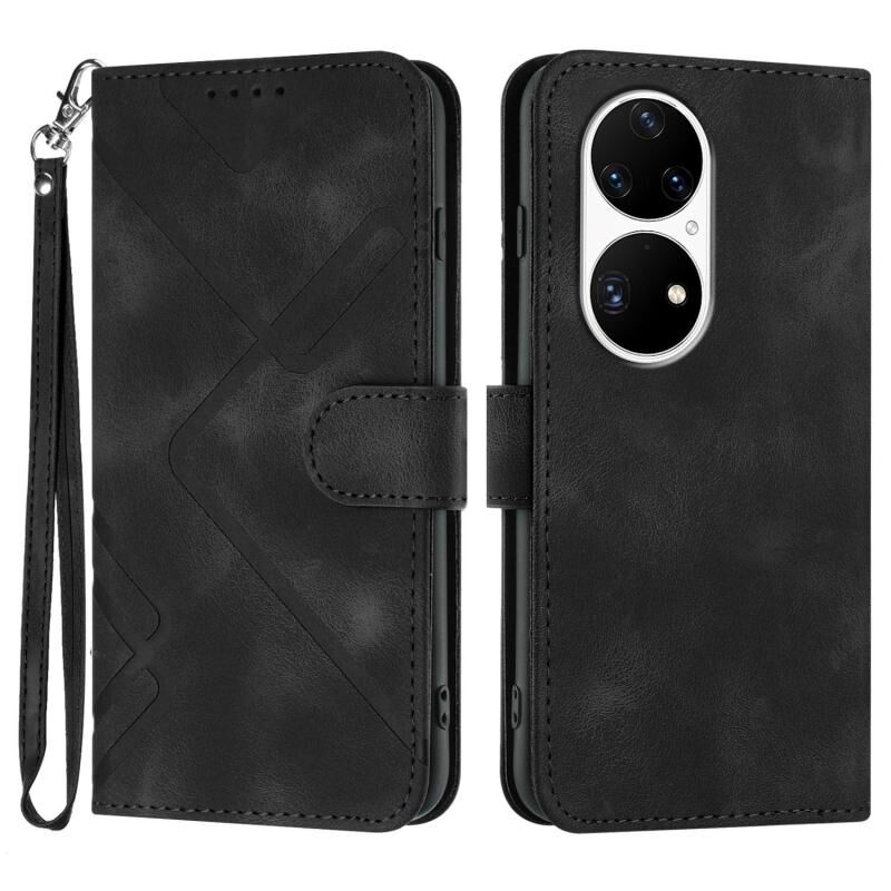 Θήκη τηλεφώνου Huawei P50 Pro με δερμάτινη υφή και μοτίβο γραμμής (Κόκκινο)