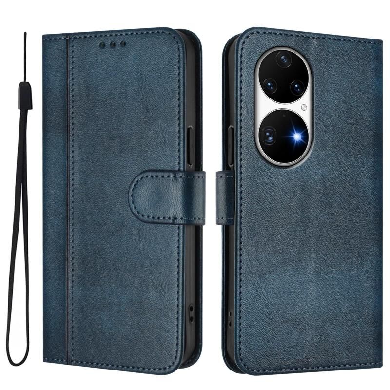 Θήκη τηλεφώνου Huawei P50 Pro Line Splicing Buckle Retro Δερμάτινη (Σκούρο μπλε)