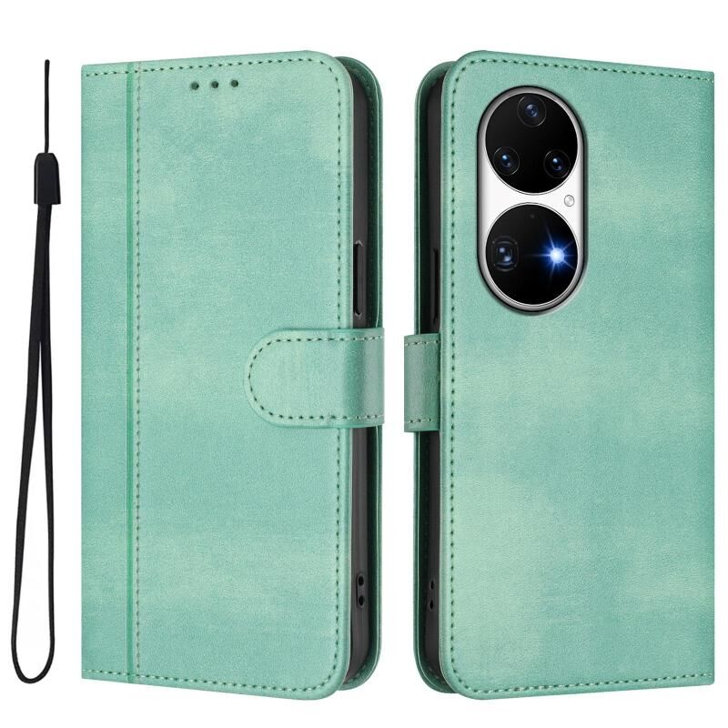 Θήκη τηλεφώνου Huawei P50 Pro Line Splicing Buckle Retro Δερμάτινη (Μέντας πράσινο)