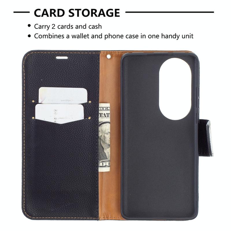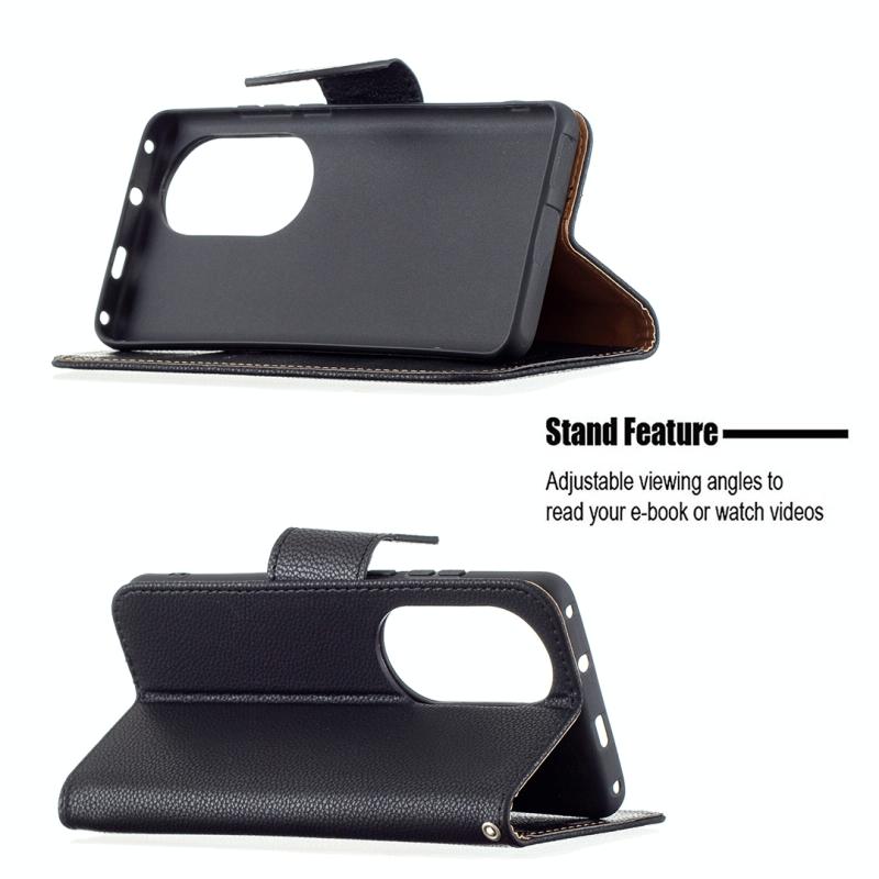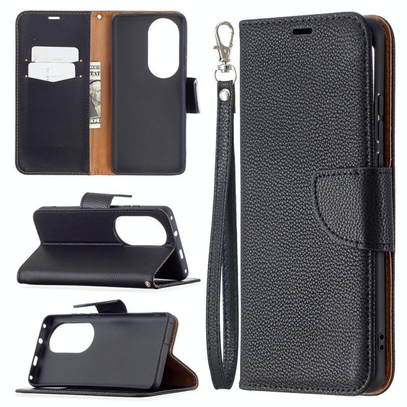 Θήκη δέρματος οριζόντιας αναδίπλωσης με υφή Λίτσι και καθαρό χρώμα για Huawei P50 Pro, με βάση στήριξης, θήκες καρτών, πορτοφόλι και κορδόνι (Γκρι)