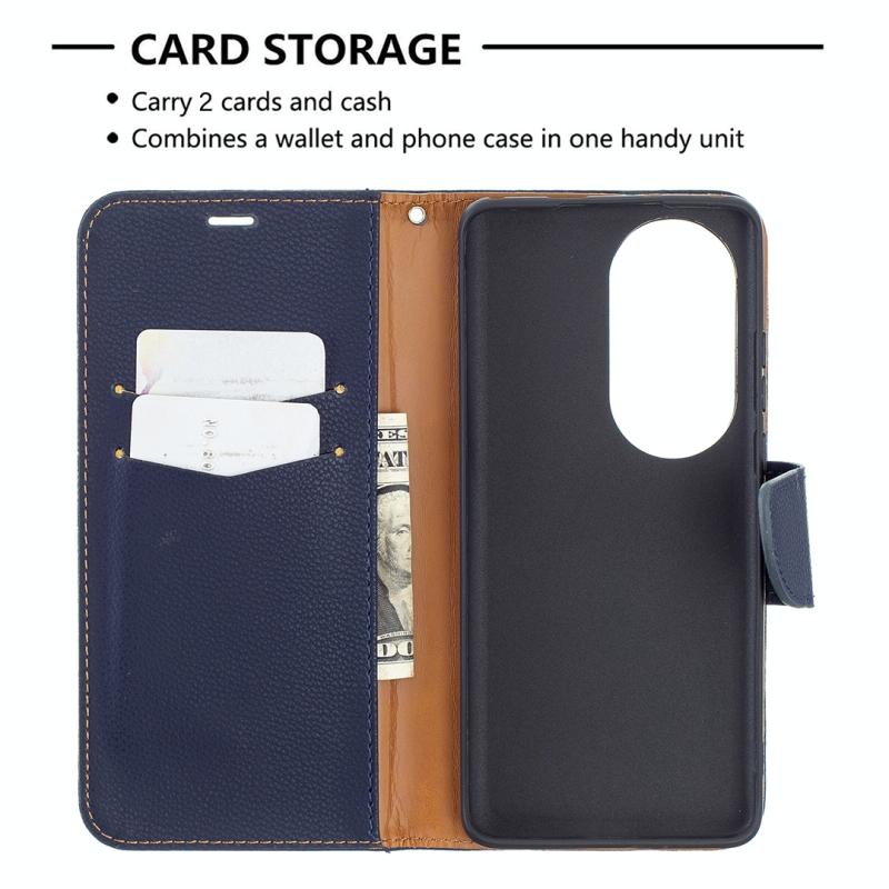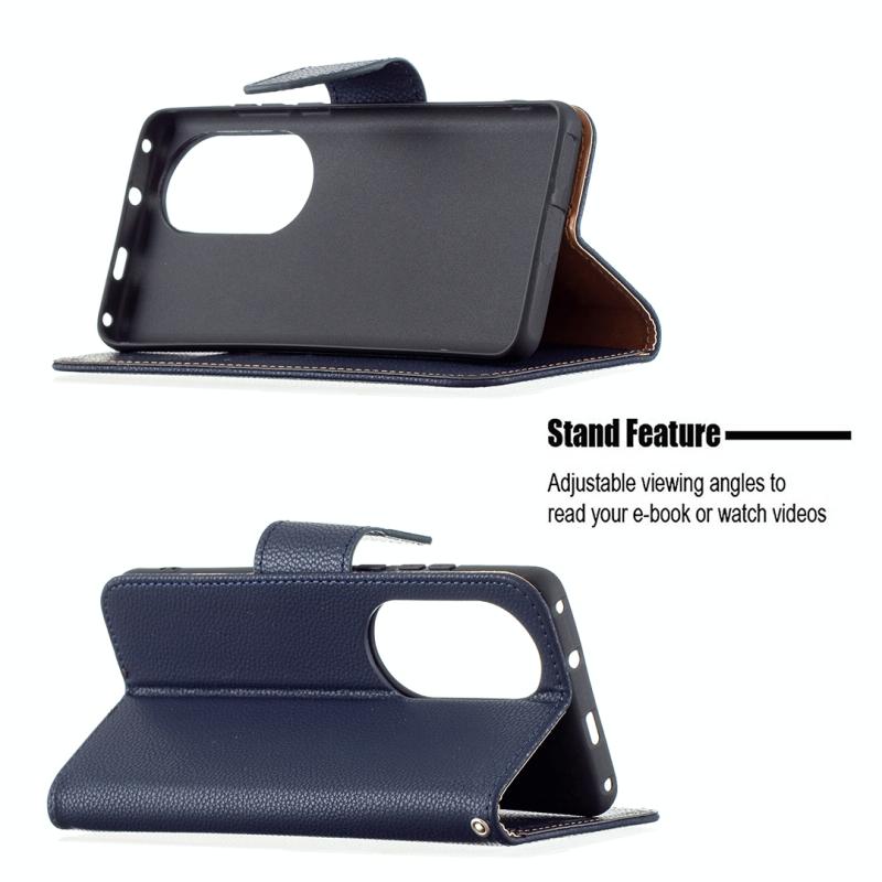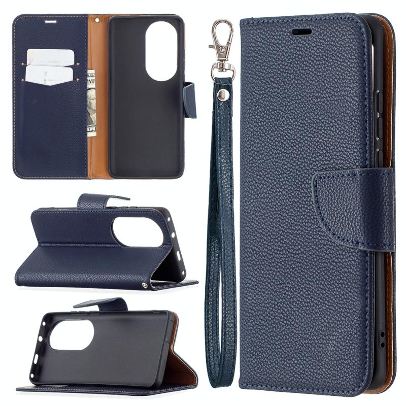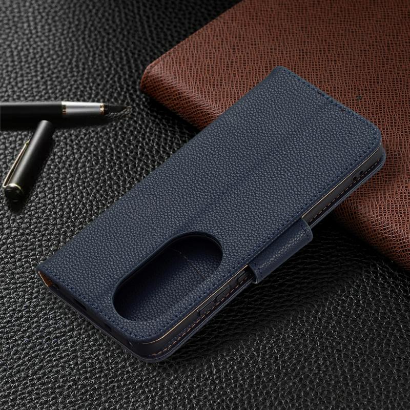 For Huawei P50 Pro Litchi Texture Pure Color Horizontal Flip Leather Case with Holder & Card Slots & Wallet & Lanyard(Dark Blue)