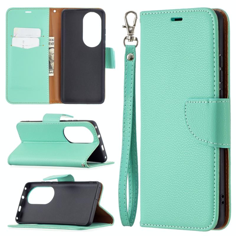 For Huawei P50 Pro Litchi Texture Pure Color Horizontal Flip Leather Case with Holder & Card Slots & Wallet & Lanyard(Green)