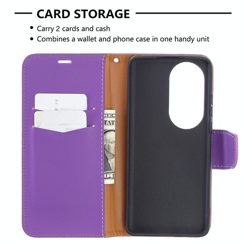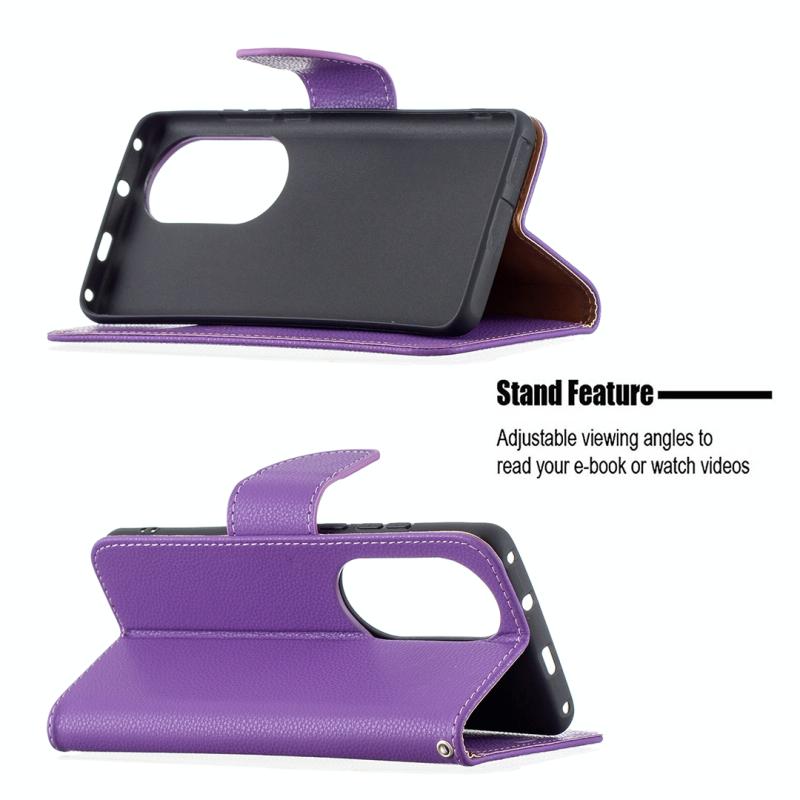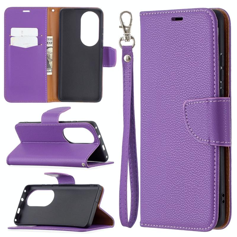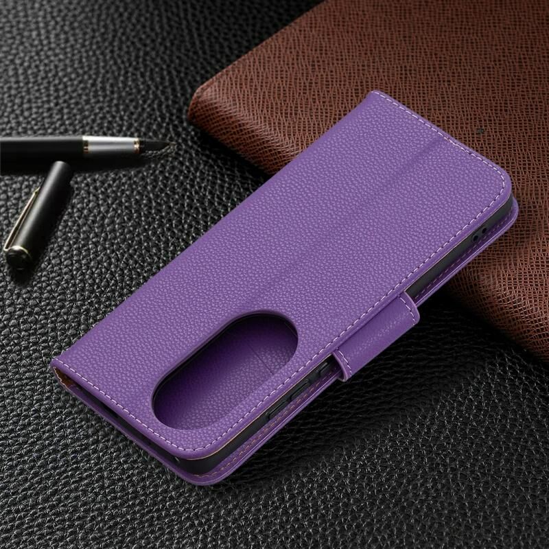 For Huawei P50 Pro Litchi Texture Pure Color Horizontal Flip Leather Case with Holder & Card Slots & Wallet & Lanyard(Purple)