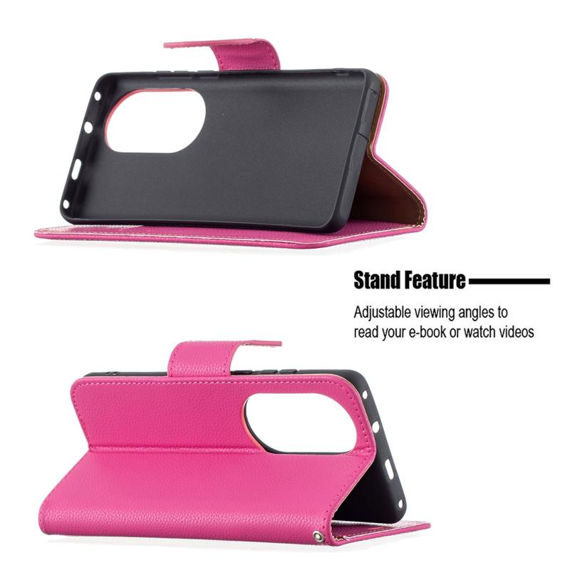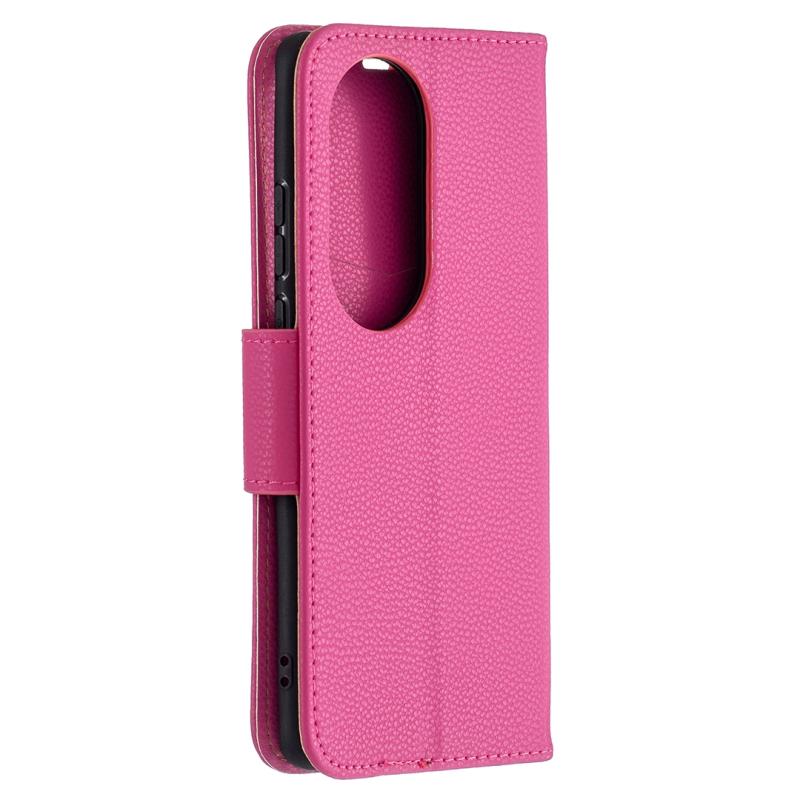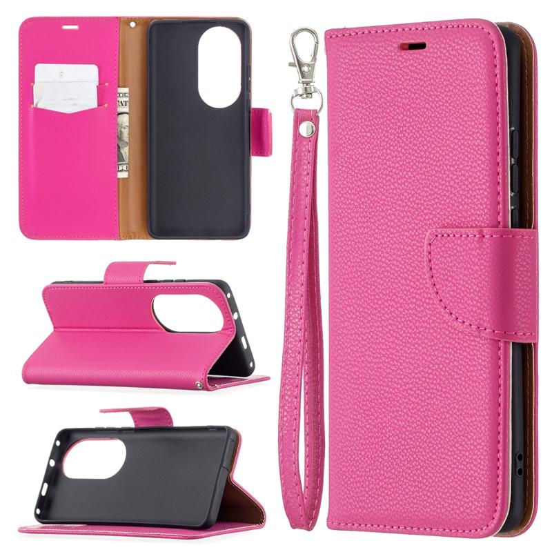 For Huawei P50 Pro Litchi Texture Pure Color Horizontal Flip Leather Case with Holder & Card Slots & Wallet & Lanyard(Rose Red)