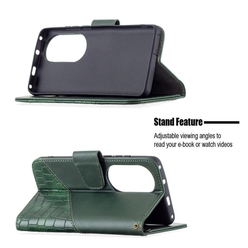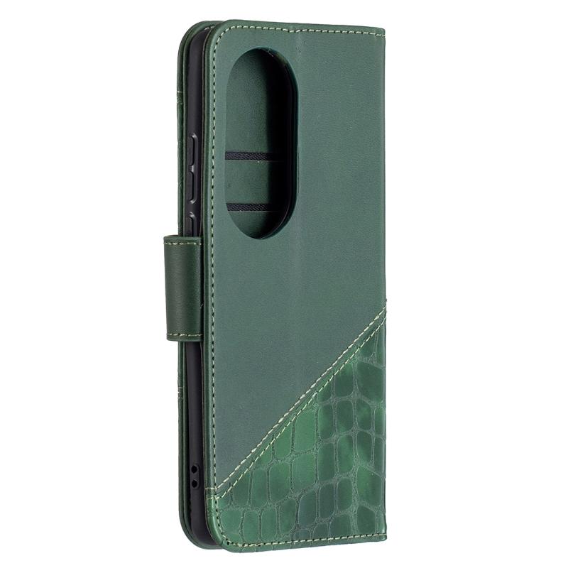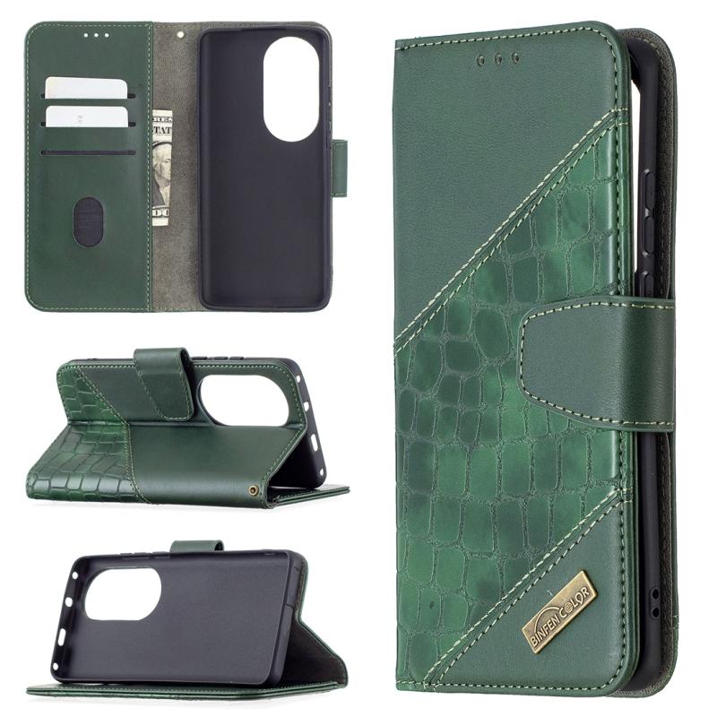 Θήκη Huawei P50 Pro με Υφή Κροκόδειλου, Οριζόντια, Δερμάτινη PU με Πορτοφόλι, Στήριξη & Θήκες Καρτών (Χρυσό Ρόδι)