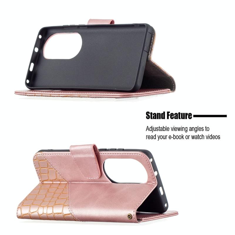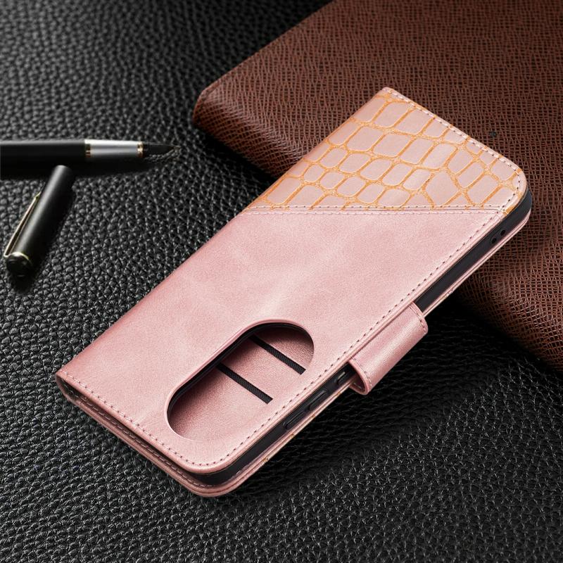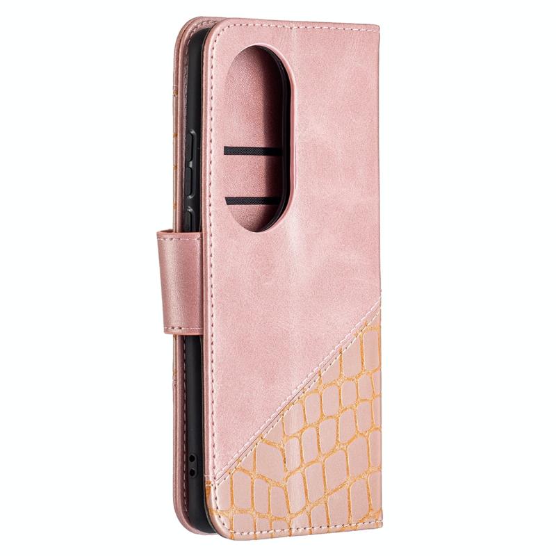 Θήκη Huawei P50 Pro με Υφή Κροκόδειλου, Οριζόντια, Δερμάτινη PU με Πορτοφόλι, Στήριξη & Θήκες Καρτών (Χρυσό Ρόδι)