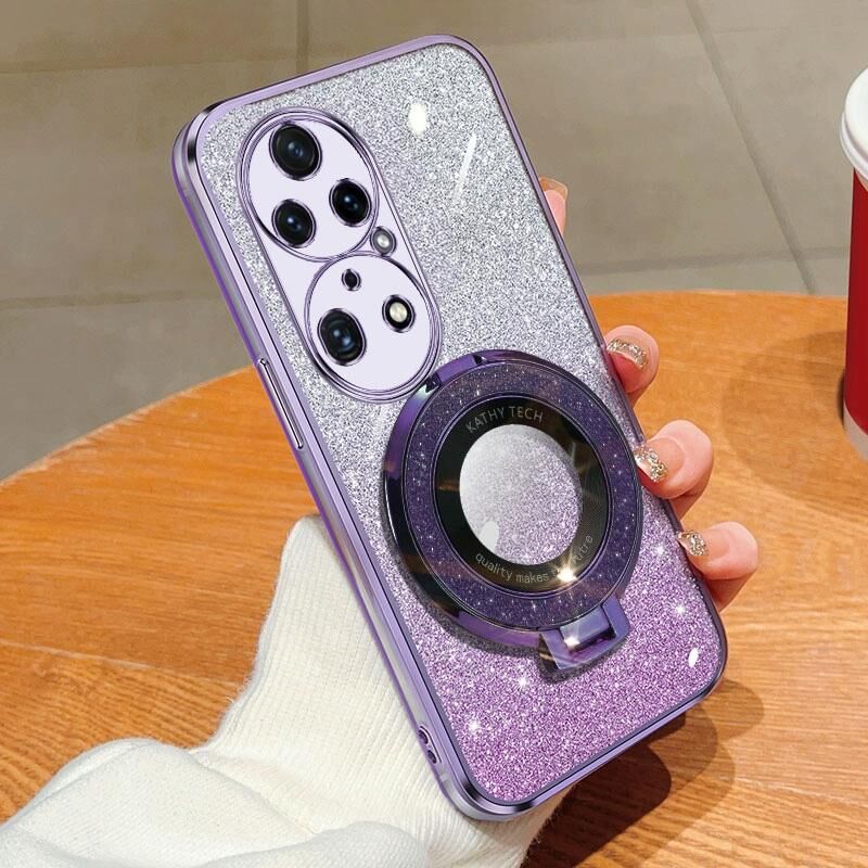 Για Huawei P50 Pro Επιμεταλλωμένο βαθμιδωτή Glitter στρογγυλή θήκη τηλεφώνου TPU κατόχου (μωβ)