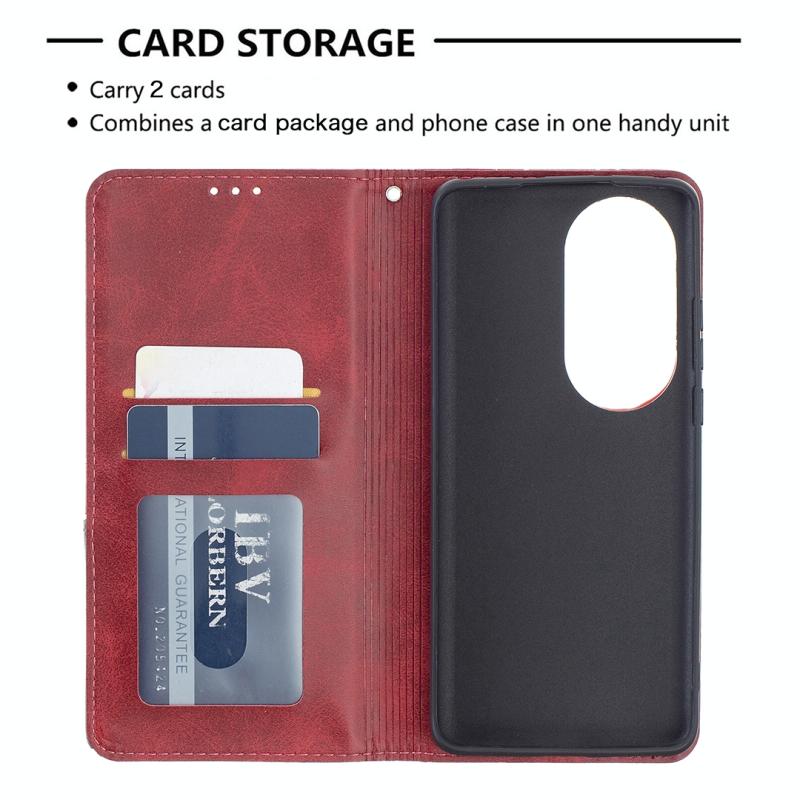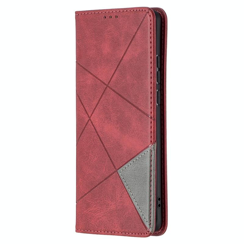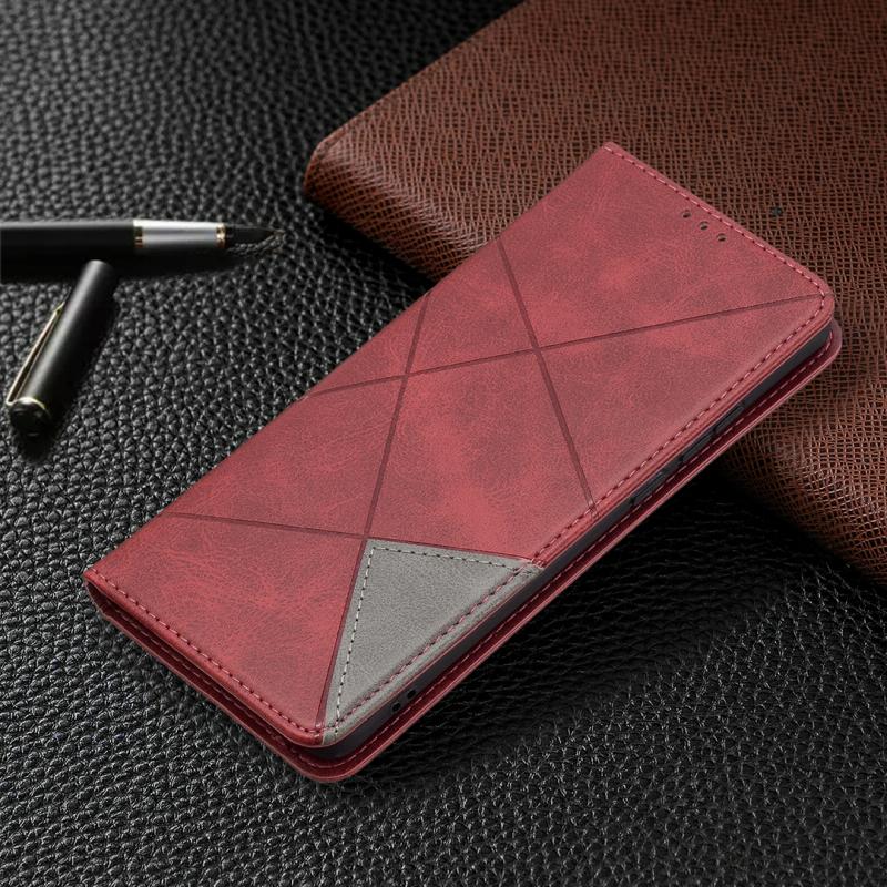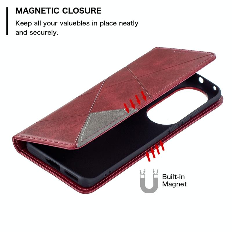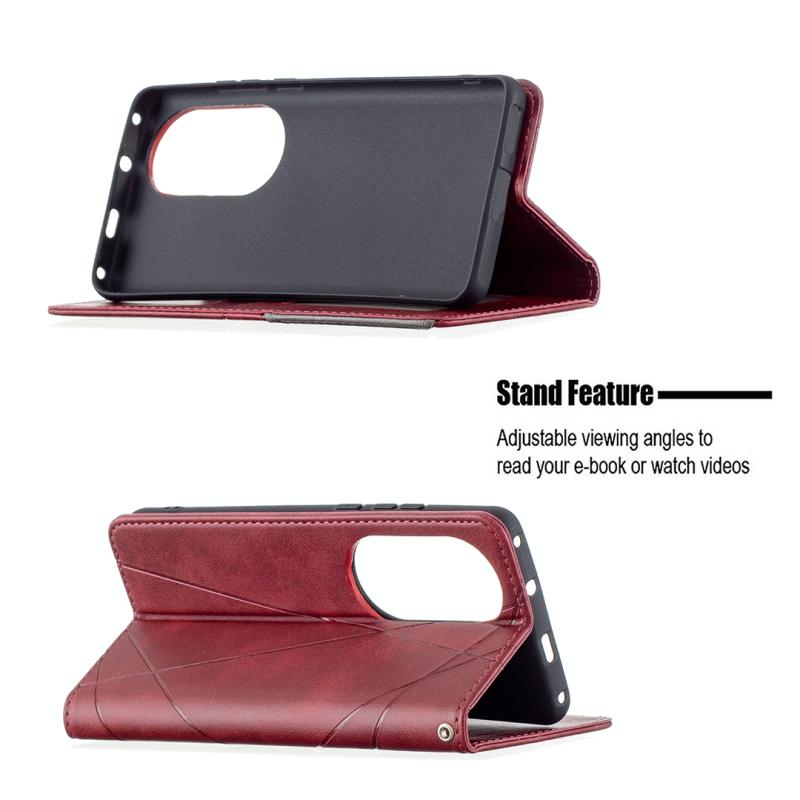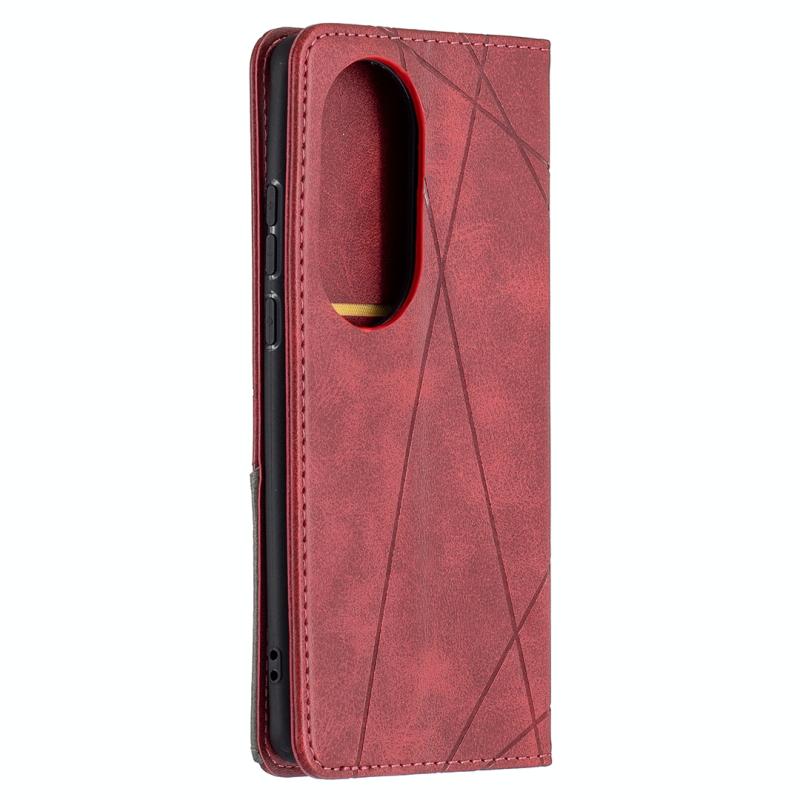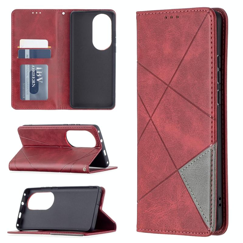 Θήκη Huawei P50 Pro με υφή ρόμβου, οριζόντια αναδιπλούμενη, μαγνητική από δέρμα με βάση στήριξης & θήκες για κάρτες (Κόκκινο)