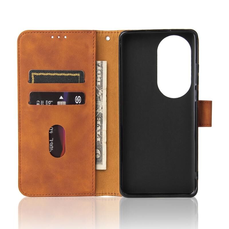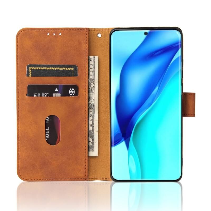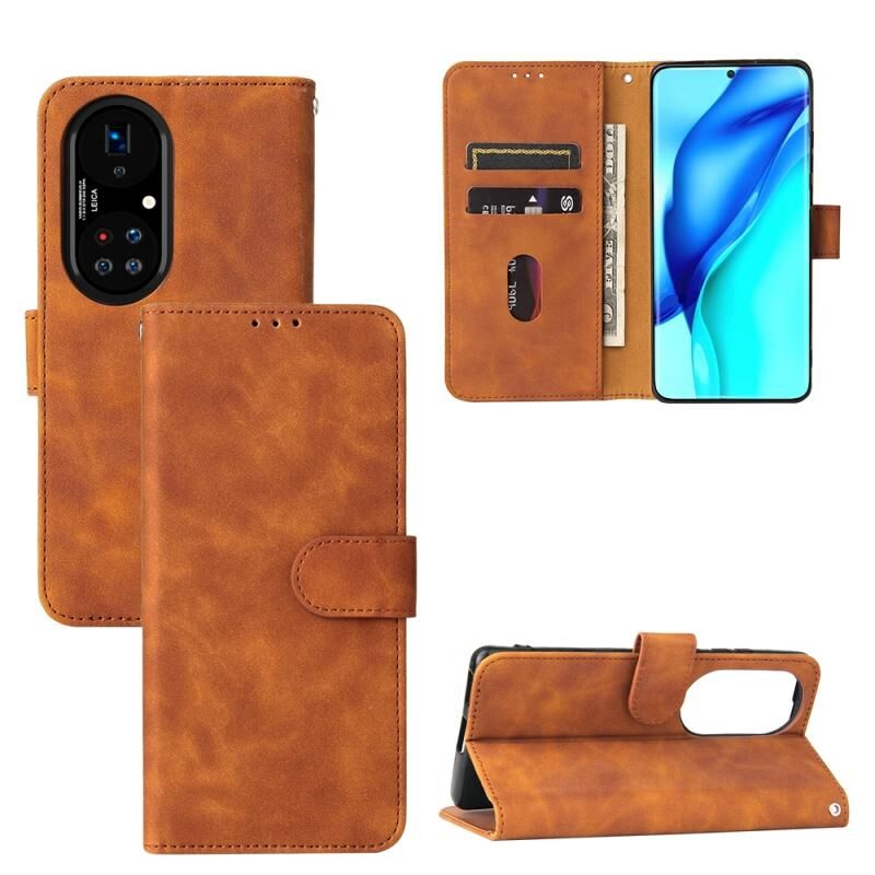 Για το Huawei P50 Pro Solid Color Skin Feel Magnetic Buckle Horizontal Flip Calf Texture PU Leather Case with Holder & Card Slots & Wallet (Καφέ)