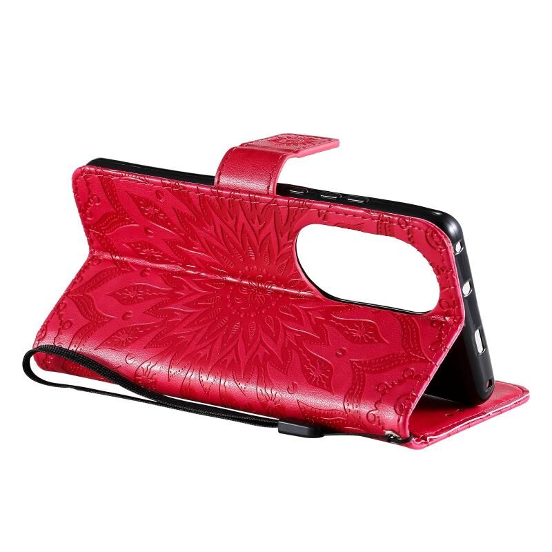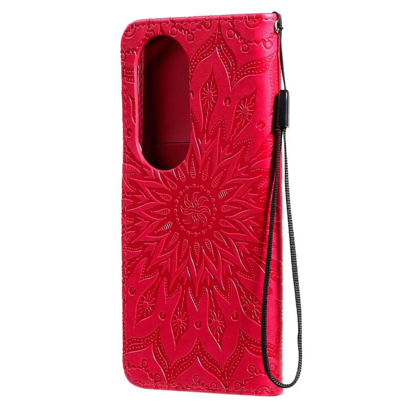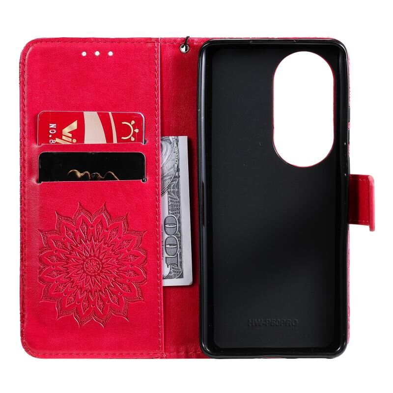 Για Huawei P50 Pro Sun ανάγλυφο μοτίβο οριζόντια Flip δερμάτινη θήκη με υποδοχή για κάρτες & κάτοχος & πορτοφόλι & κορδόνι (Κόκκινο)