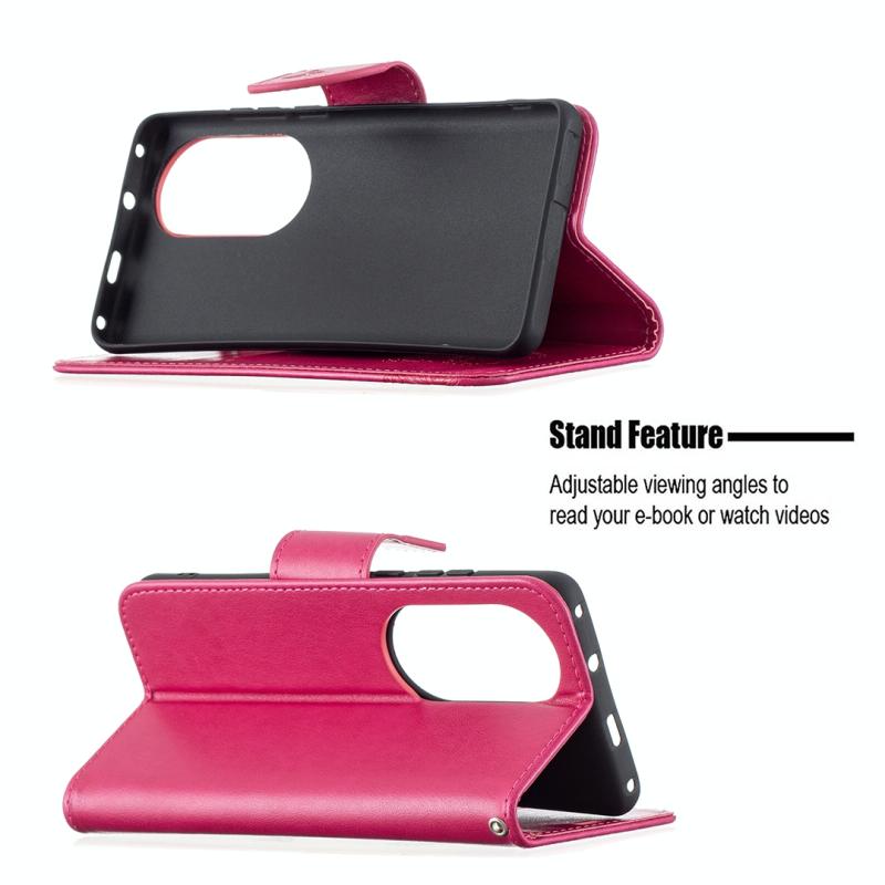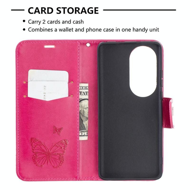 Θήκη δέρματος οριζόντιας αναδίπλωσης για Huawei P50 Pro με ανάγλυφο σχέδιο Δύο Πεταλούδες, με βάση στήριξης, θήκη καρτών, πορτοφόλι και λουρί (Γκρι)