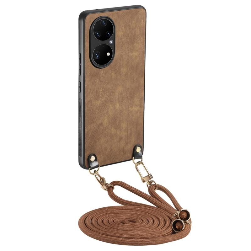 Θήκη κινητού Huawei P50 Pro από δέρμα vintage και PC με λουρί crossbody (Μπλε)