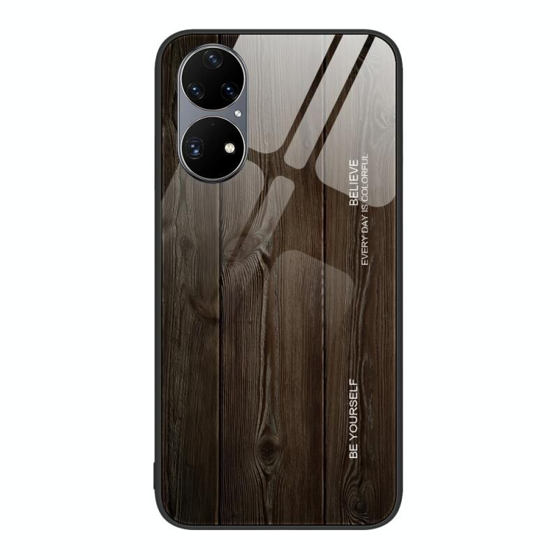Για Huawei P50 Pro Wood Grain Glass Προστατευτική θήκη (Μαύρο)