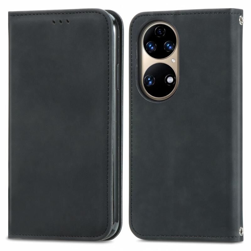 Για Huawei P50 Retro Skin Feel Business Μαγνητική οριζόντια Flip δερμάτινη θήκη με υποδοχές για κάρτες & πορτοφόλι & κορνίζα φωτογραφιών (Μαύρο)