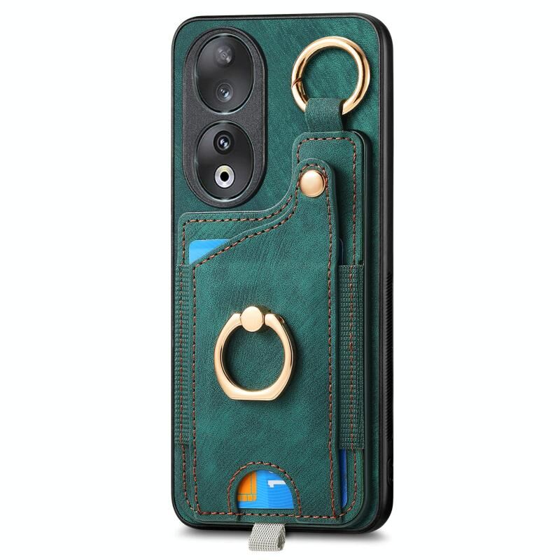 Για Huawei P50 Ρετρό δέρμα αίσθηση δαχτυλίδι κάρτα τσάντα υπόθεση τηλεφώνου με Hang Loop (πράσινο)