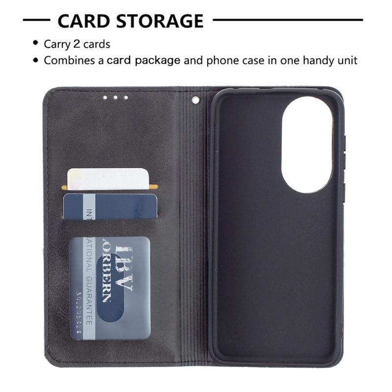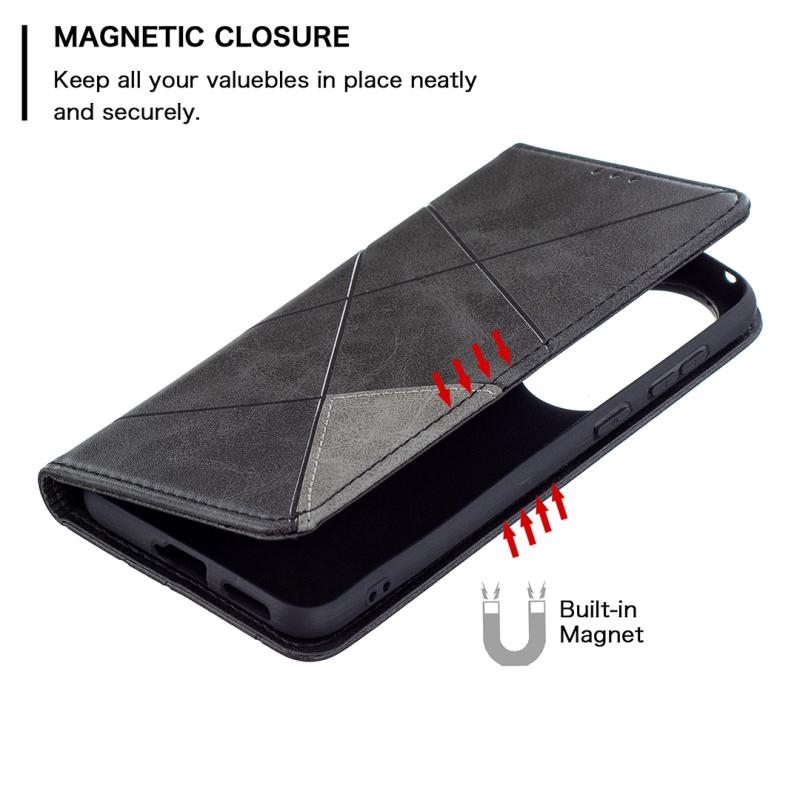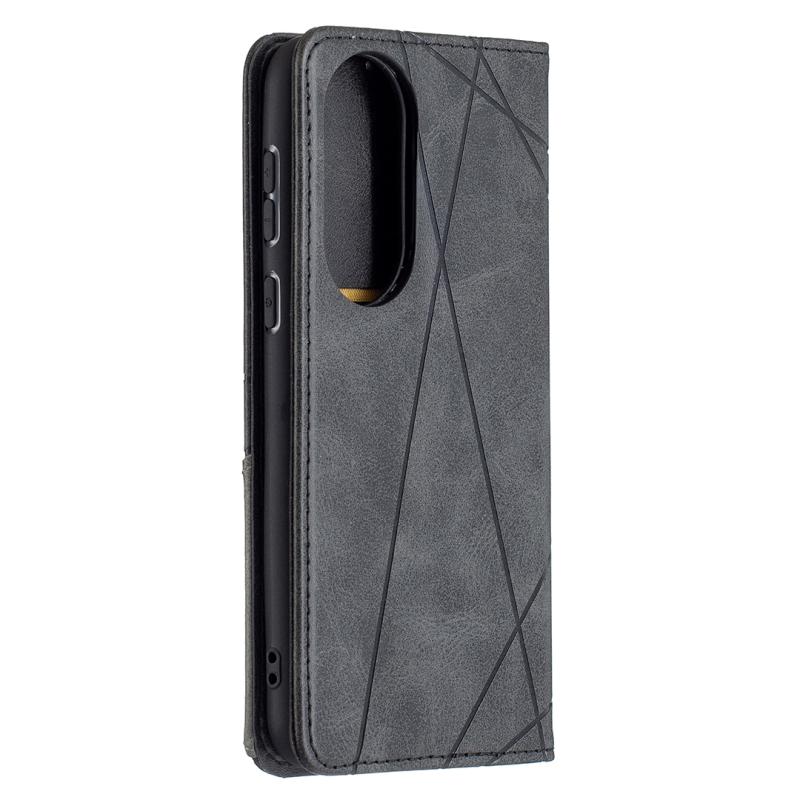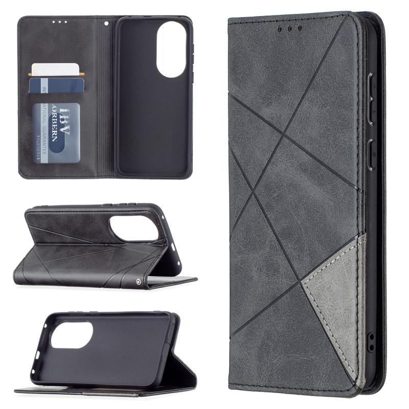 Θήκη Huawei P50 με υφή ρόμβου, οριζόντια αναδιπλούμενη, μαγνητική από δέρμα με βάση στήριξης & θήκες για κάρτες (Μαύρο)