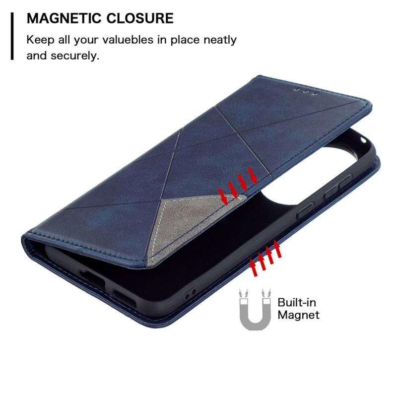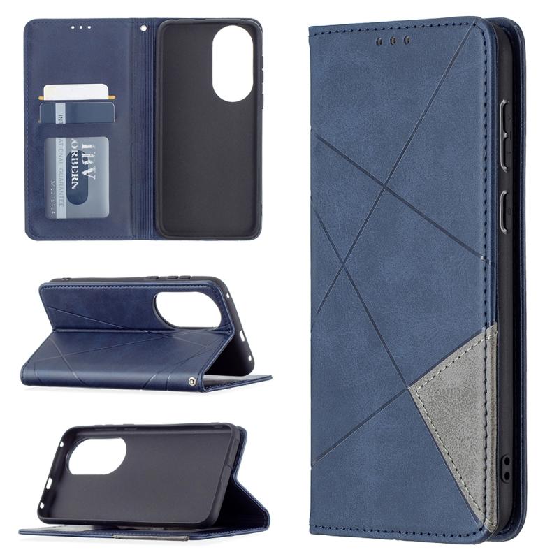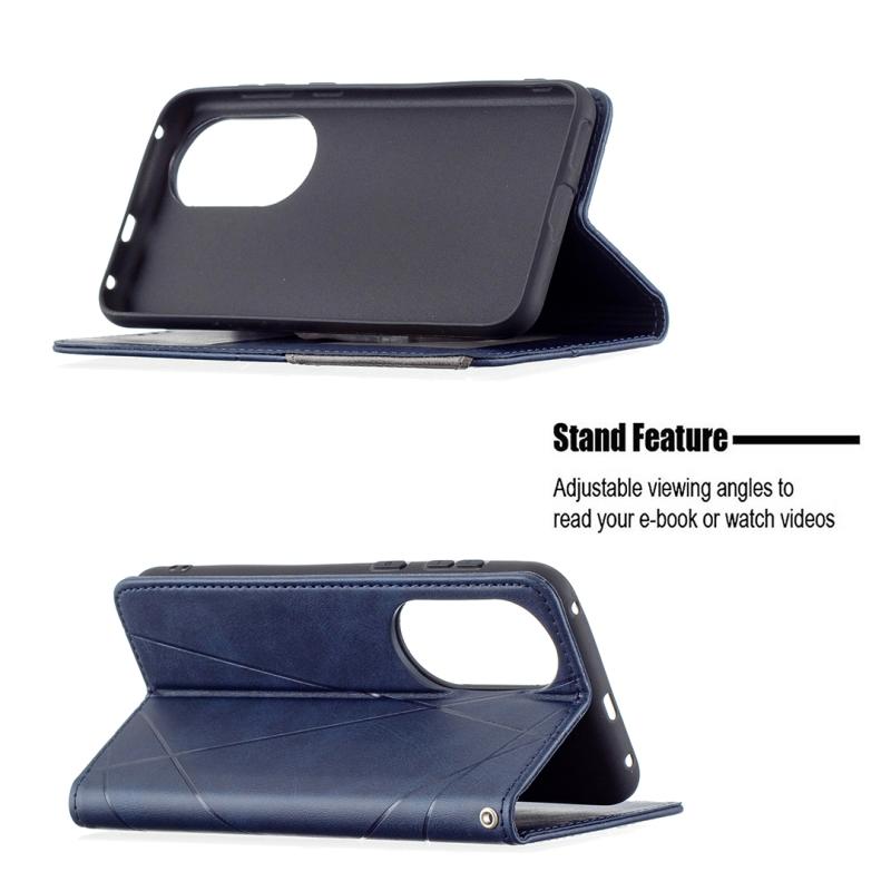 Θήκη Huawei P50 με υφή ρόμβου, οριζόντια αναδιπλούμενη, μαγνητική από δέρμα με βάση στήριξης & θήκες για κάρτες (Μαύρο)