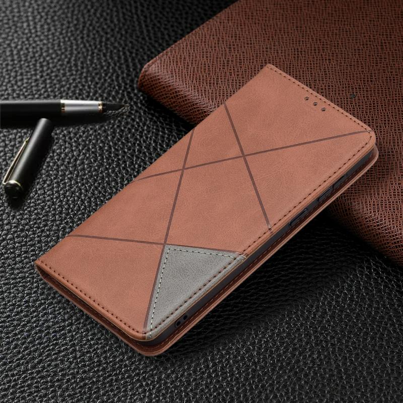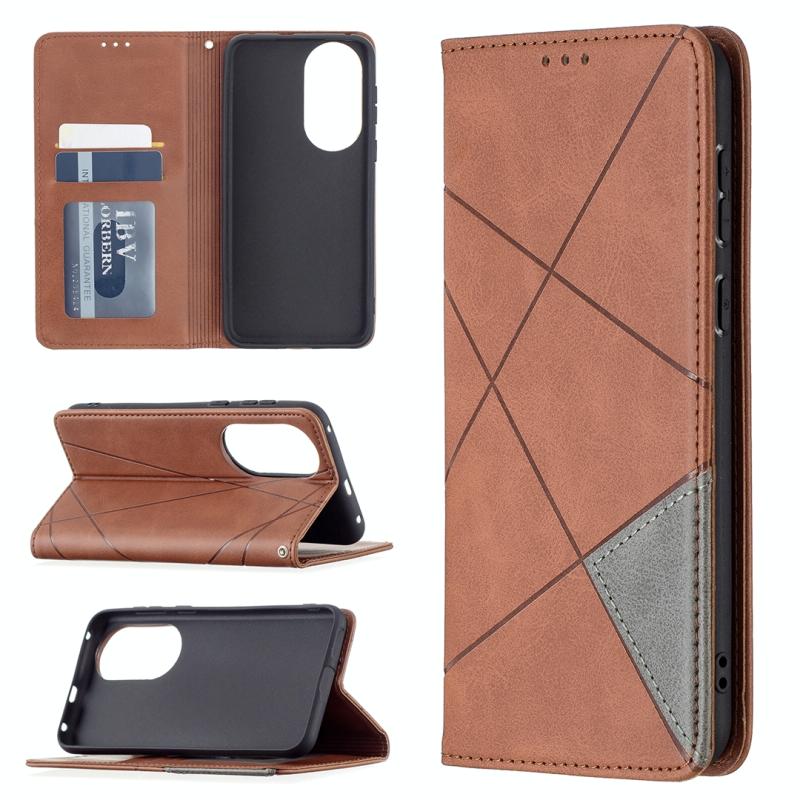 Θήκη Huawei P50 με υφή ρόμβου, οριζόντια αναδιπλούμενη, μαγνητική από δέρμα με βάση στήριξης & θήκες για κάρτες (Μαύρο)
