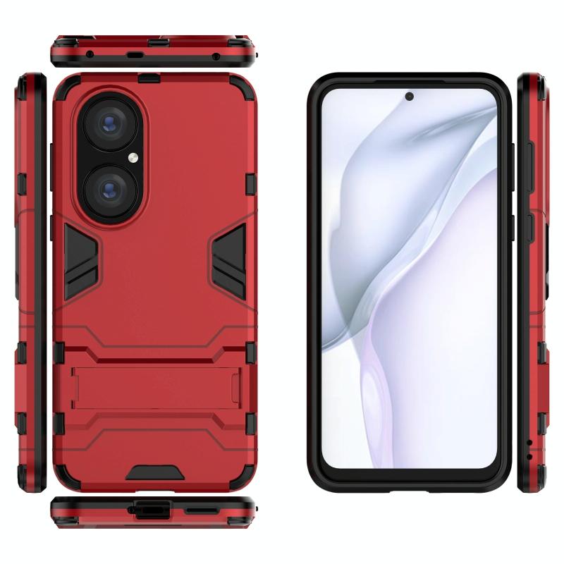 For Huawei P50 Shockproof PC + TPU Protective Case with Hidden Holder(Red)