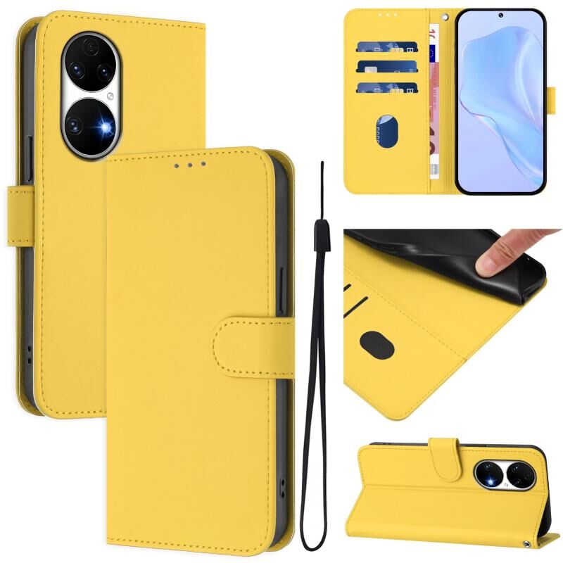 Για το Huawei P50 δέρμα αίσθηση στερεό χρώμα δέρμα τηλέφωνο υπόθεση με κορδόνι (Lemon Yellow)