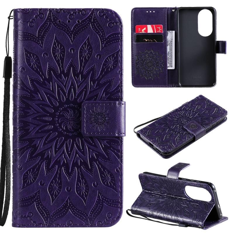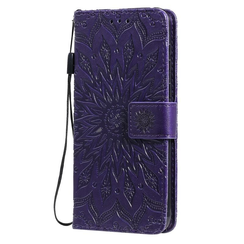Για Huawei P50 Sun ανάγλυφο μοτίβο οριζόντια Flip δερμάτινη θήκη με υποδοχή για κάρτες & κάτοχος & πορτοφόλι & κορδόνι (μωβ)