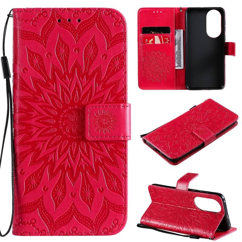 Για Huawei P50 Sun ανάγλυφο μοτίβο οριζόντια Flip δερμάτινη θήκη με υποδοχή για κάρτες & κάτοχος & πορτοφόλι & κορδόνι (κόκκινο)
