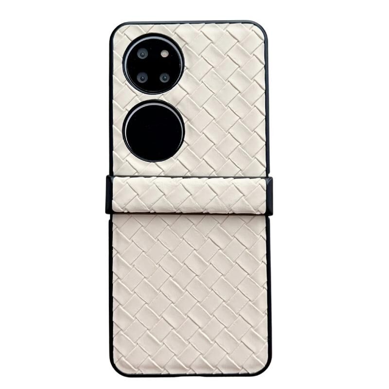 Θήκη Τηλεφώνου Huawei P50 Σετ Τριών Τεμαχίων με Υφή Ύφανσης, Δίπλωσης, από PU (Χρυσό)