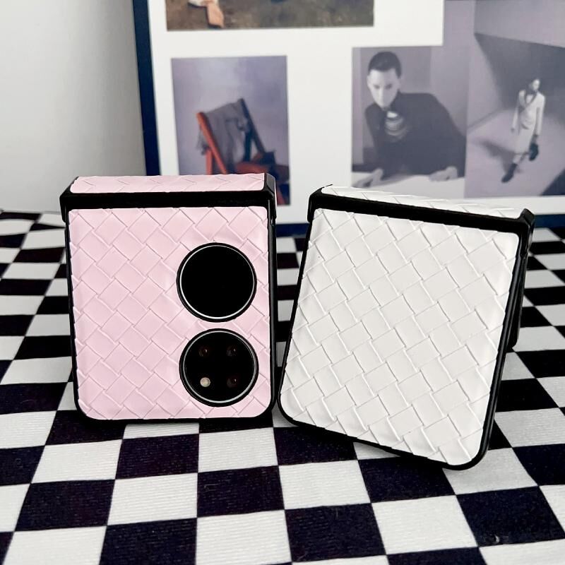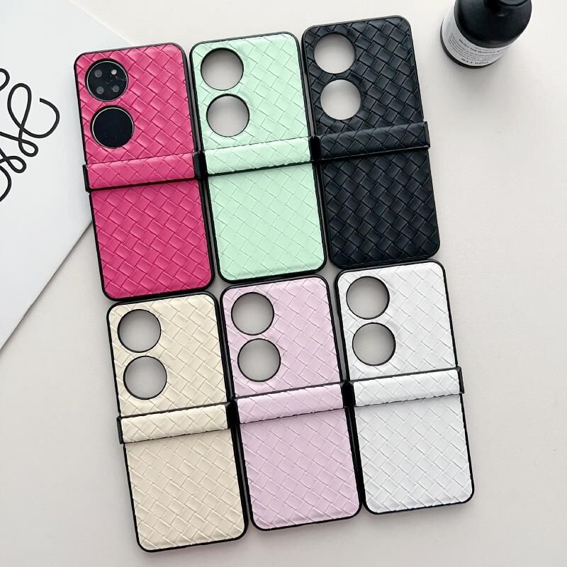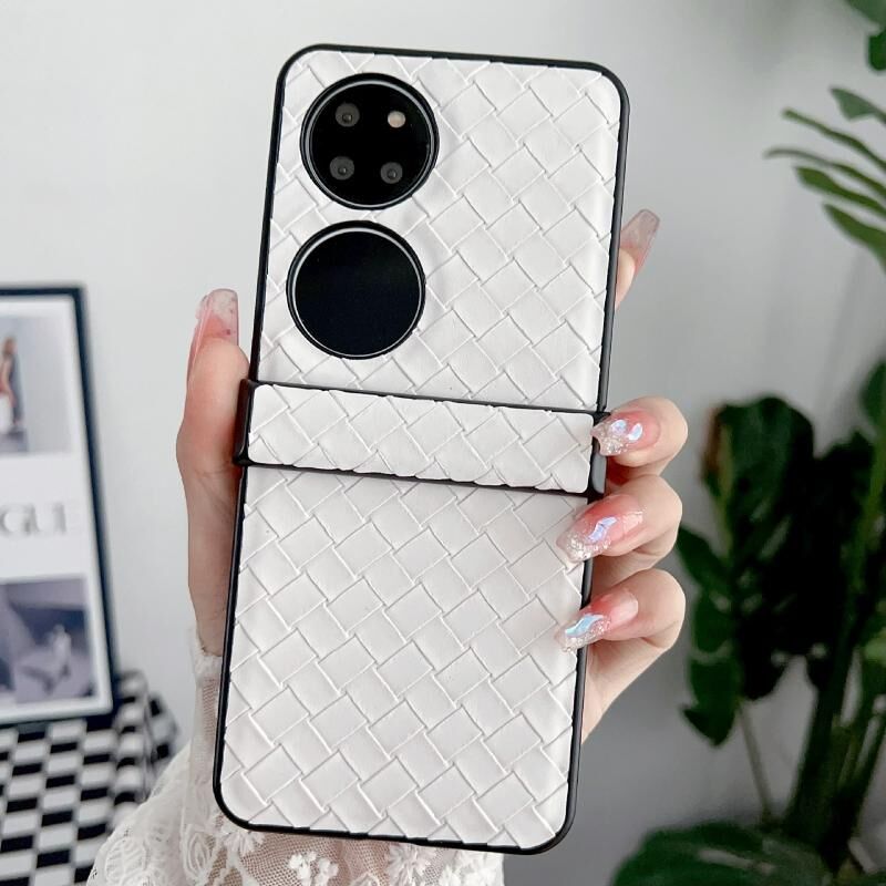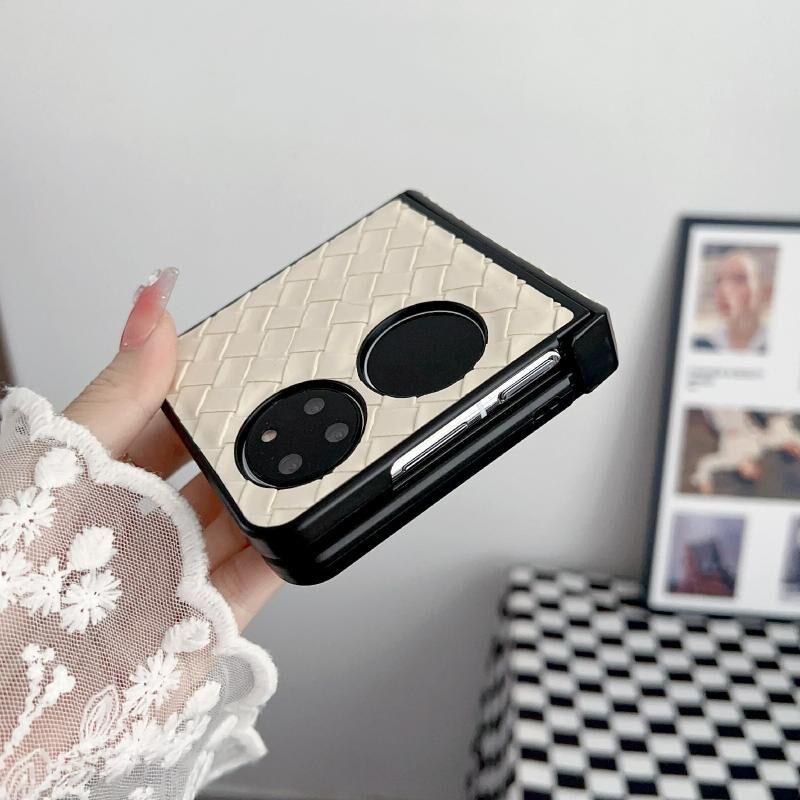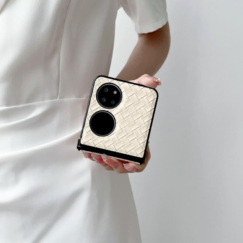 Θήκη Τηλεφώνου Huawei P50 Σετ Τριών Τεμαχίων με Υφή Ύφανσης, Δίπλωσης, από PU (Χρυσό)