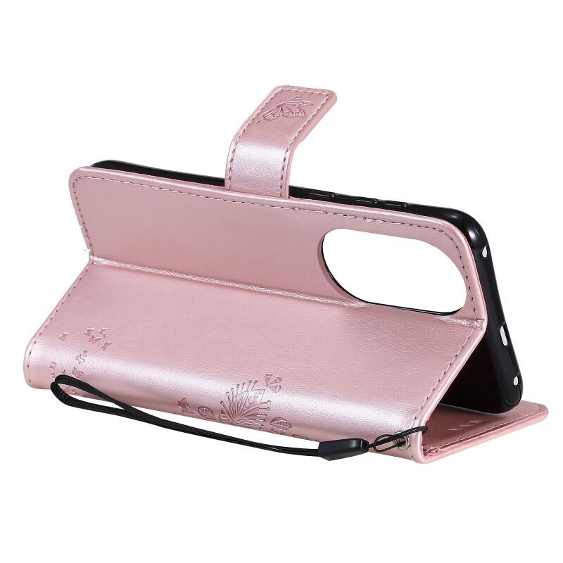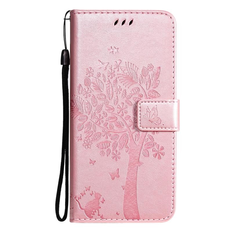 Για το Huawei P50 Tree & Cat Pattern Pressed Printing Horizontal Flip PU Leather Case με θήκη & υποδοχές καρτών & πορτοφόλι & κορδόνι (Ροζ χρυσός)
