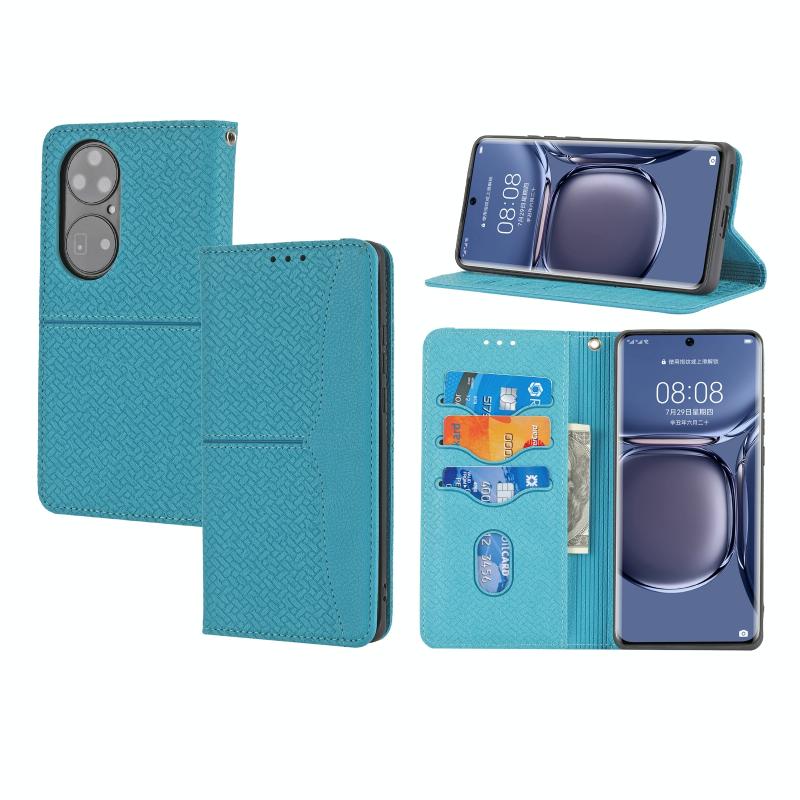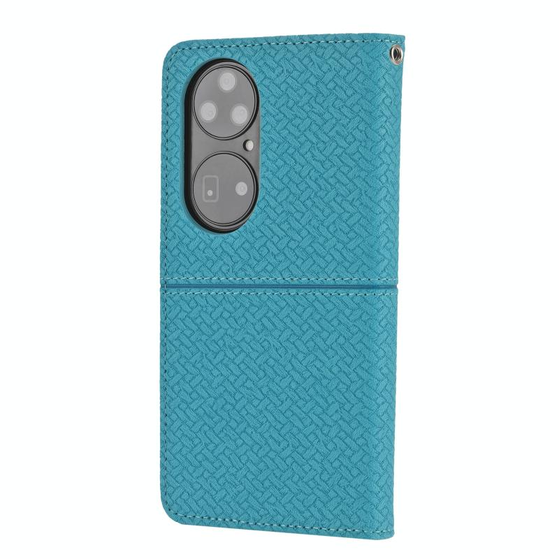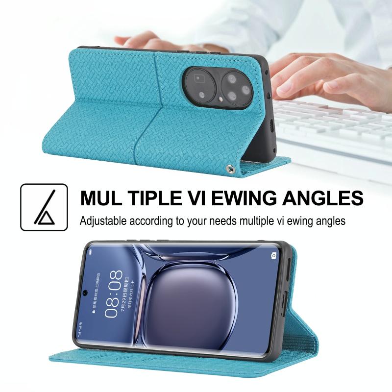 Θήκη Huawei P50 με υφαντή υφή, ραφές, μαγνητικό κλείσιμο, οριζόντια, από δερματίνη PU με βάση στήριξης, θήκες για κάρτες, πορτοφόλι & λουρί (Μαύρο)