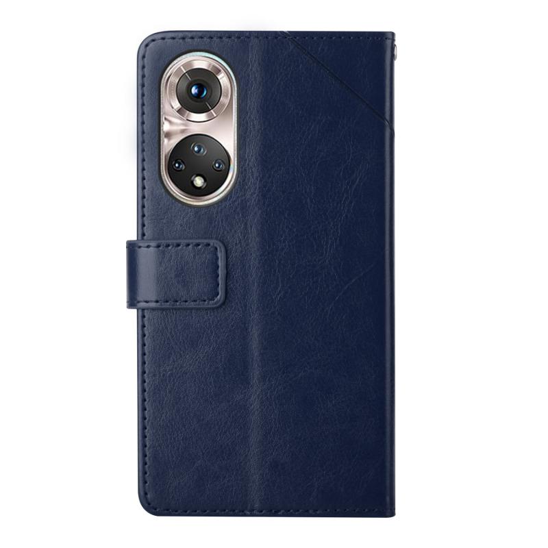 Θήκη τηλεφώνου Huawei P50 Y με ραφές, οριζόντια αναδιπλούμενη από δέρμα με βάση στήριξης & θήκες καρτών & πορτοφόλι & κορνίζα φωτογραφιών (Χρυσό Ρόδι)