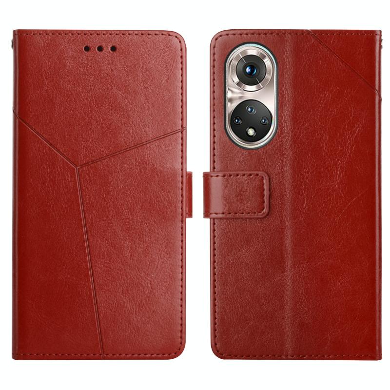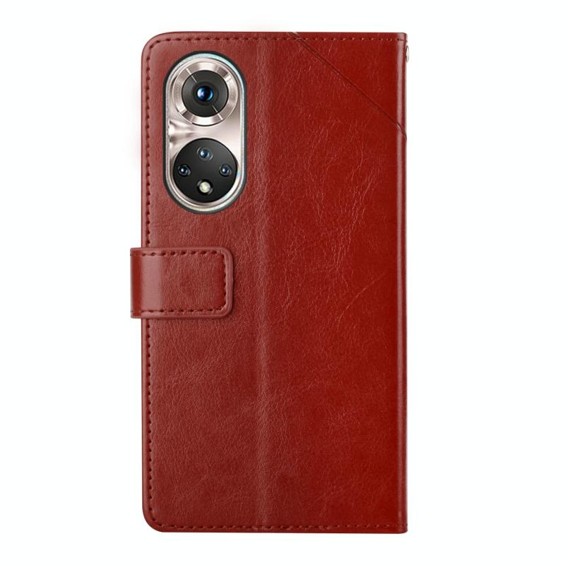 Θήκη τηλεφώνου Huawei P50 Y με ραφές, οριζόντια αναδιπλούμενη από δέρμα με βάση στήριξης & θήκες καρτών & πορτοφόλι & κορνίζα φωτογραφιών (Καφέ)