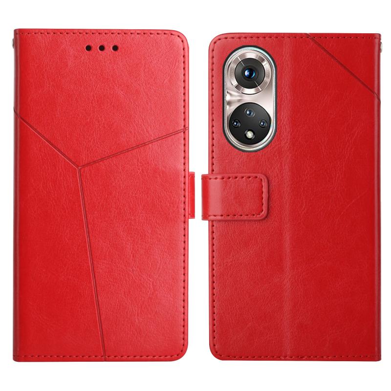 Θήκη τηλεφώνου Huawei P50 Y με ραφές, οριζόντια αναδιπλούμενη από δέρμα με βάση στήριξης & θήκες καρτών & πορτοφόλι & κορνίζα φωτογραφιών (Καφέ)