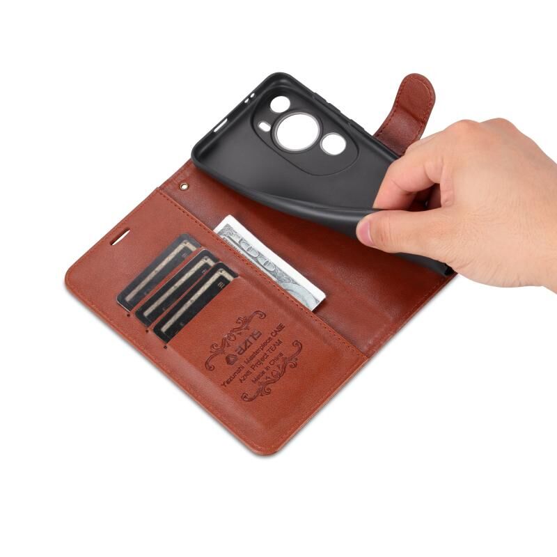 Για Huawei P60 Art AZNS Sheepskin Texture Flip υπόθεση τηλεφώνου δέρμα (καφέ) (AZNS)