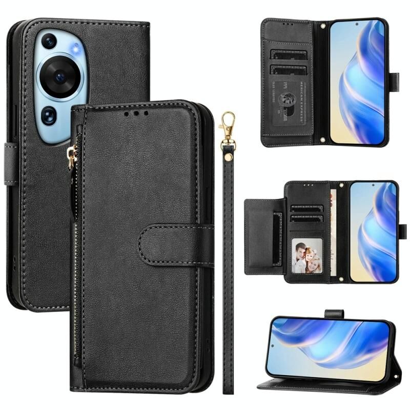 Για Huawei P60 Art Multi-Card Slots φερμουάρ πορτοφόλι δερμάτινη θήκη τηλεφώνου (μαύρο)