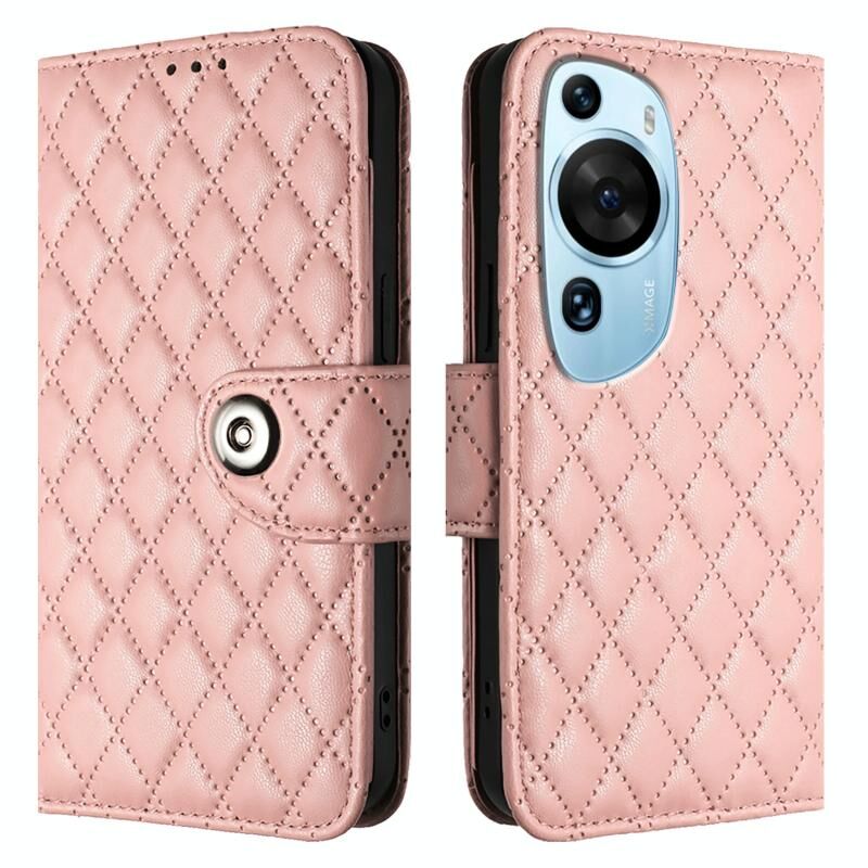 Για το Huawei P60 Art Rhombic Texture Flip δερμάτινη θήκη τηλεφώνου με κορδόνι (Coral Pink)